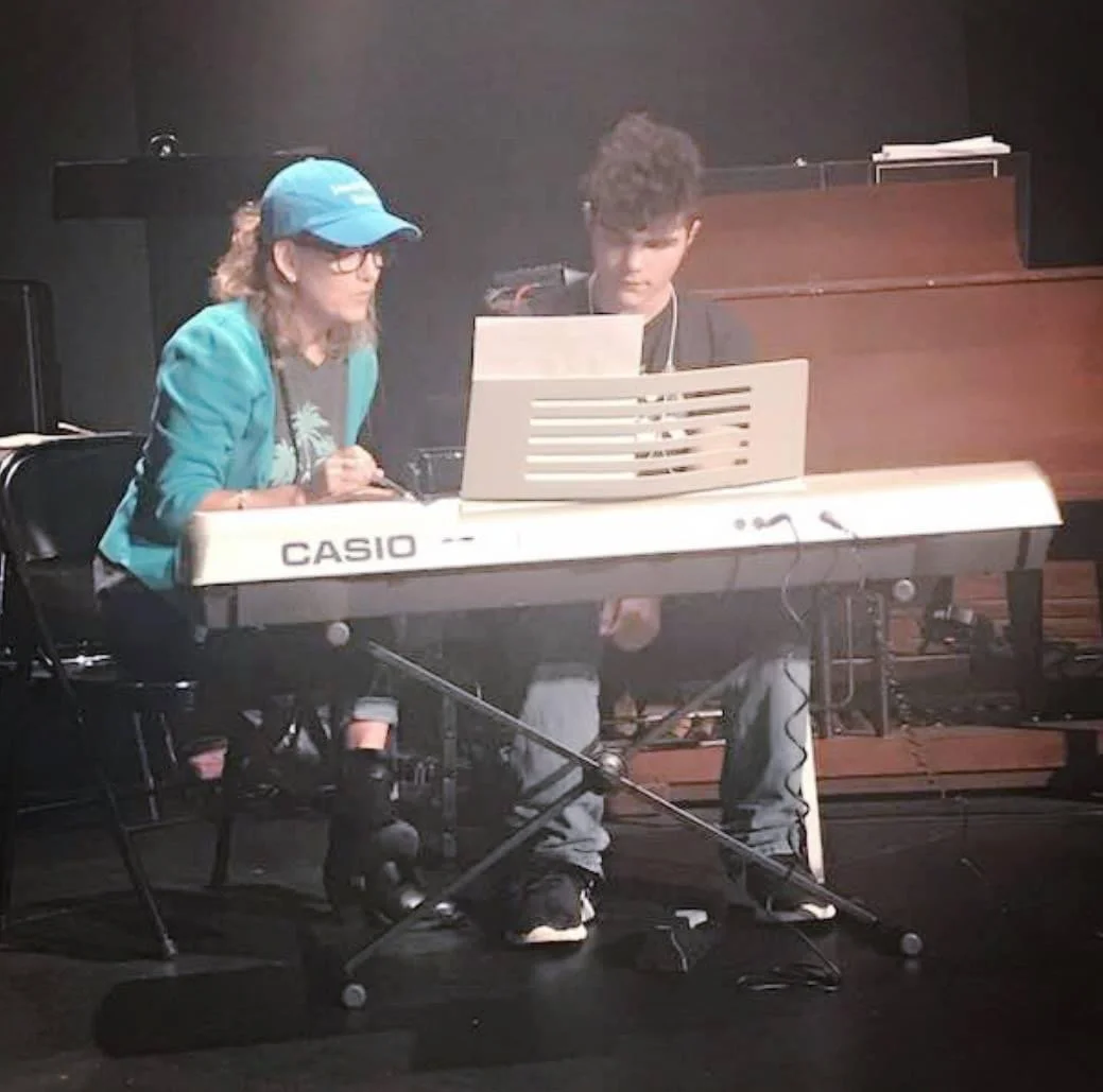 The student plays with songs on YouTube or a playlist. I transpose the keyboard to the key the student is learning to play in at the time. Because most of the students have keyboards instead of an actual piano, they transpose the keys when they practice at home while playing with YouTube or a playlist. They also can change the settings on the keyboard to play strings, organ, or a combination of instruments. The students enjoy playing along with their favorite bands and music. I think it keeps their interest in learning the instrument and they have fun.